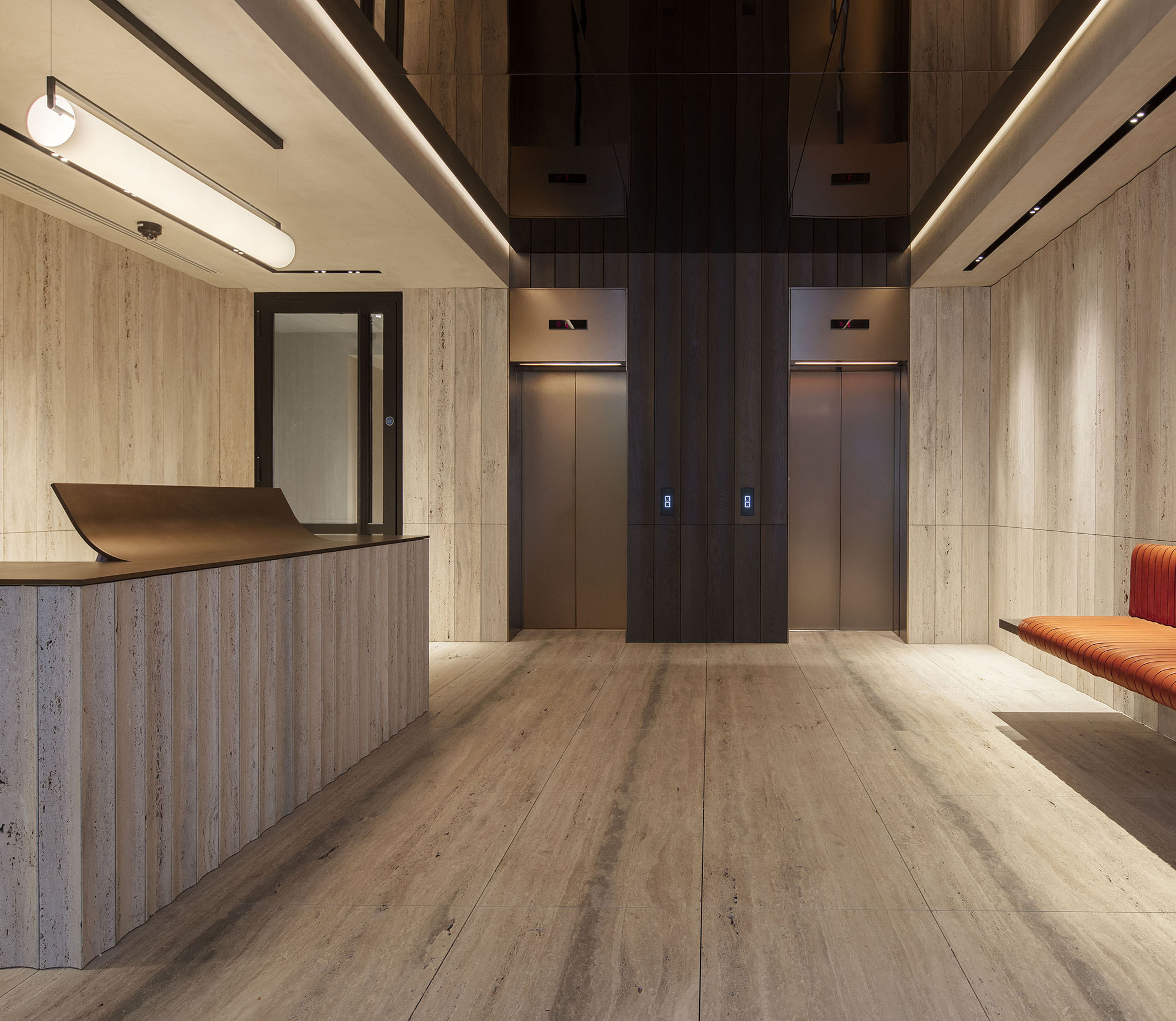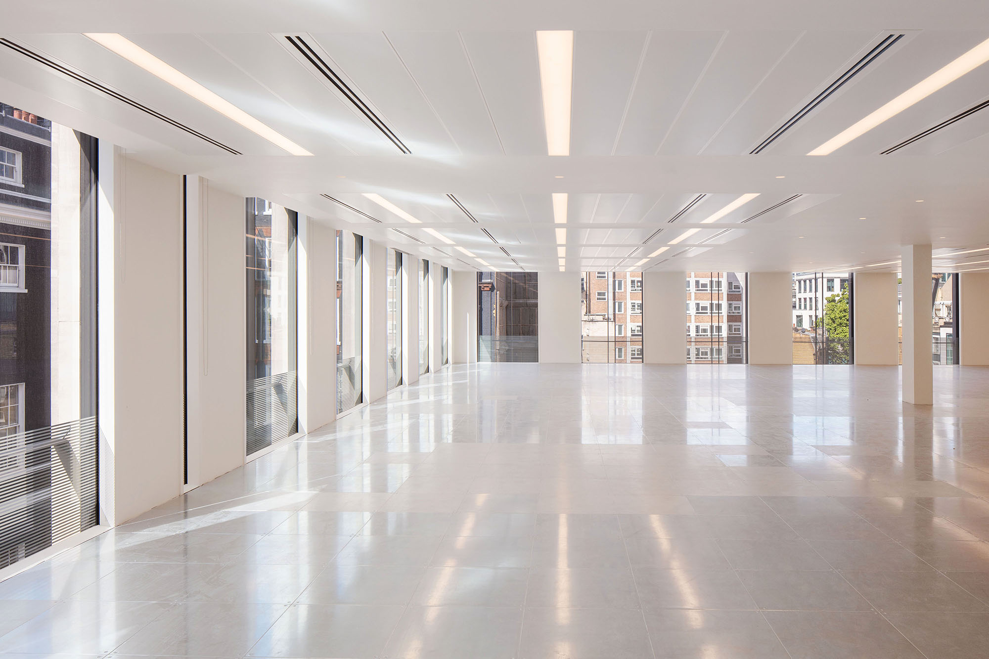 Occupying an enviable corner position within the heart of Mayfair, 20 Grafton Street presented an opportunity to create a truly best-in-class office and retail building. The key interventions introduce access to a new rooftop terrace and balconies on all levels, luxurious end-of-journey facilities and elegant communal areas including an enlarged and welcoming reception using natural materials and gently scalloped walls. Sustainability sits at the heart of the refurbishment centred on a modern entirely new MEP system resulting in an EPC A rating for the building.